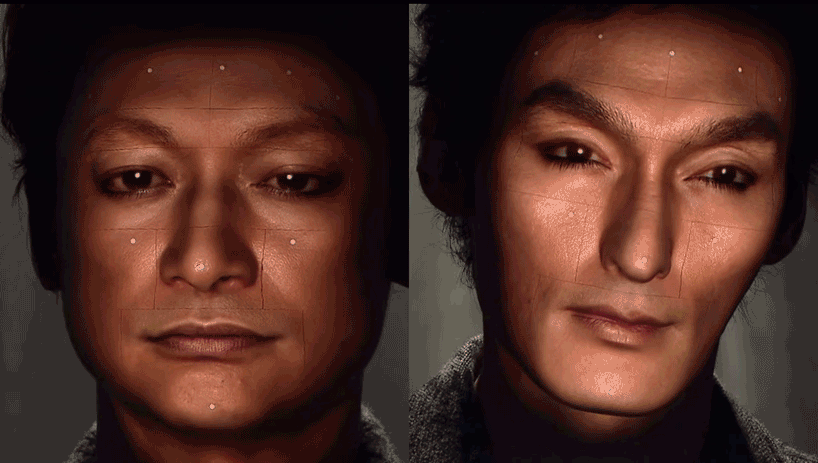顾名思义,它的确是个“镜子”——物理反馈系统由5000个小型电机和驱动杆拼接而成,通过全息扫描仪获取脸部的3D建模结构然后实时传输到反馈系统上,再通过“数字皮肤”全息影像生成一个漂亮的脸蛋投射上去。