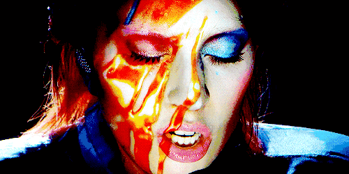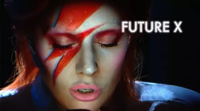 Lady Gaga在2016年Grammy颁奖典礼上演唱《Space Oddity》的时候,用面部投影再现了1973年David Bowie在《Aladdin Sane》这张专辑上的闪电妆。